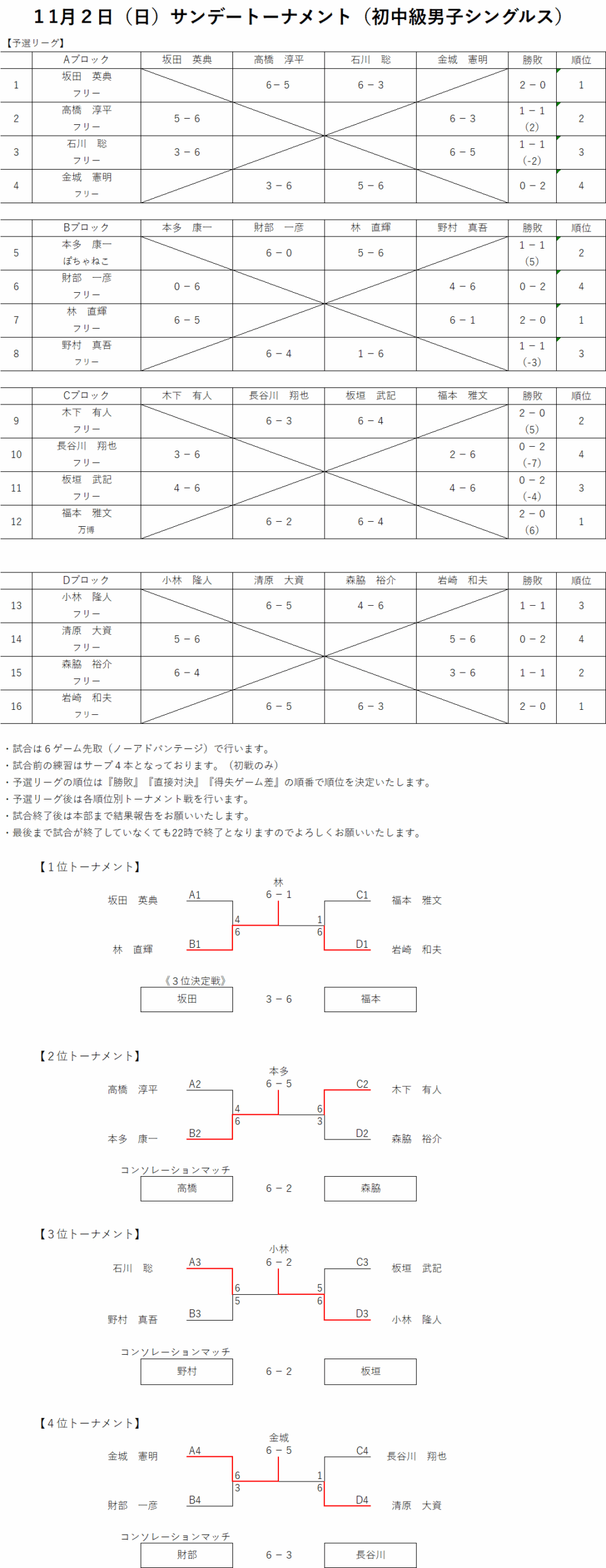 2025.11.2(日)サンデートーナメント(初中級男子シングルス)