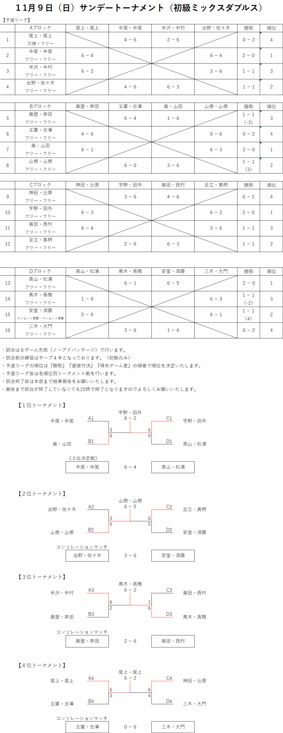 2025.11.9(日)サンデートーナメント(初級ミックスダブルス)