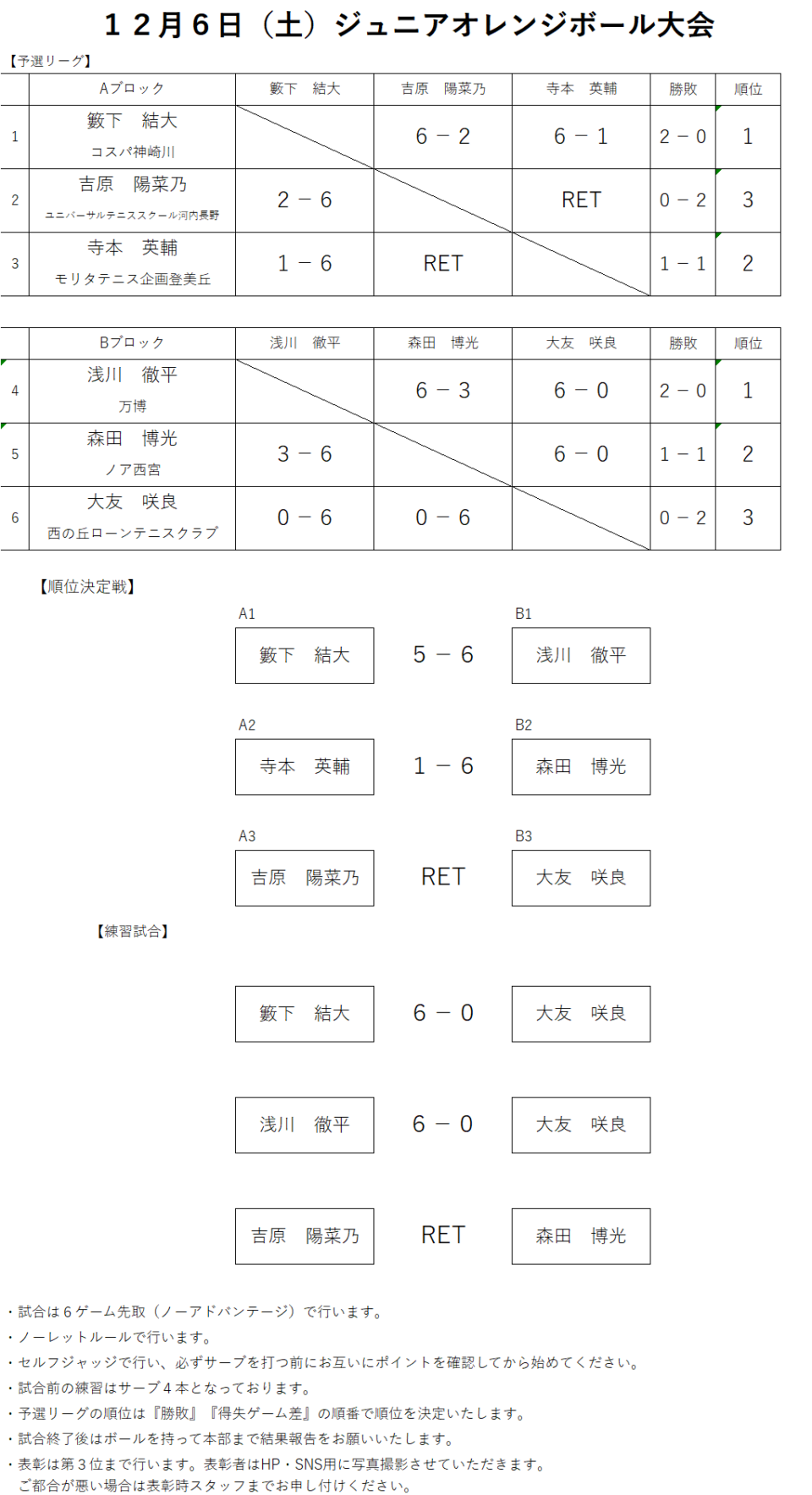 2025.12.6(土)ジュニアオレンジボール男女混合シングルス大会