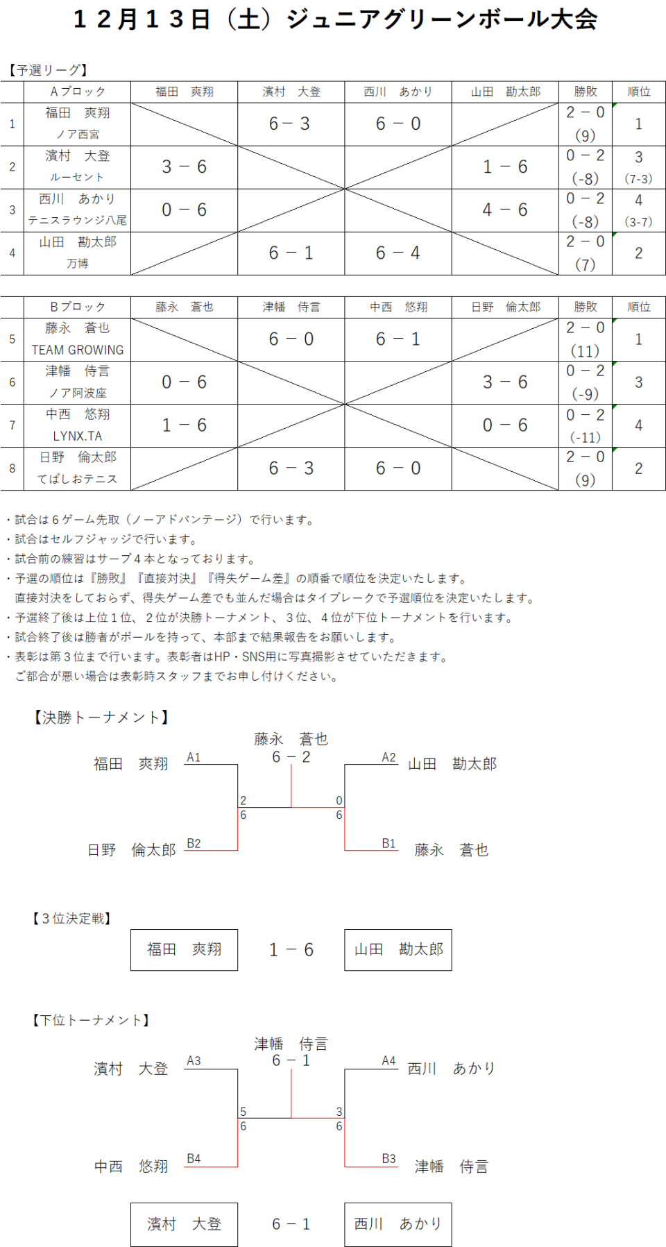 2025.12.13(土)ジュニアグリーンボール男女混合シングルス大会