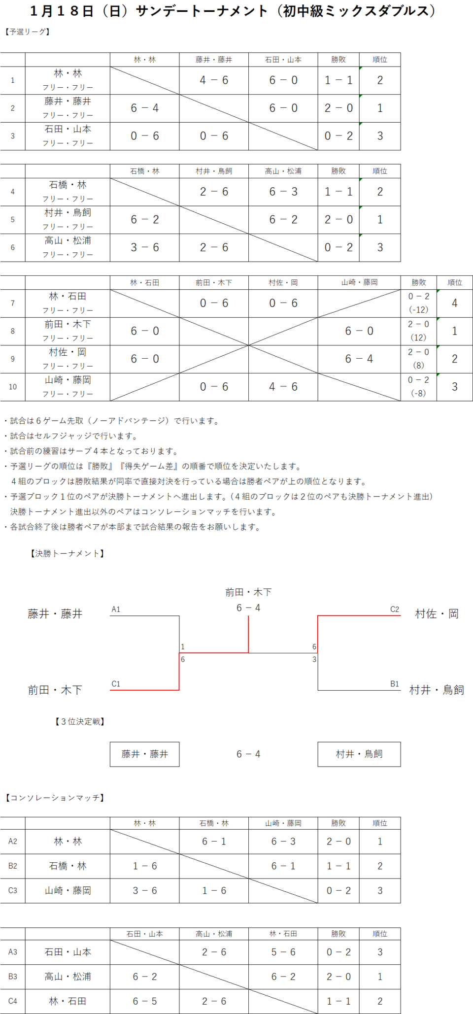 2025.1.18(日)サンデートーナメント(初中級MIXダブルス)