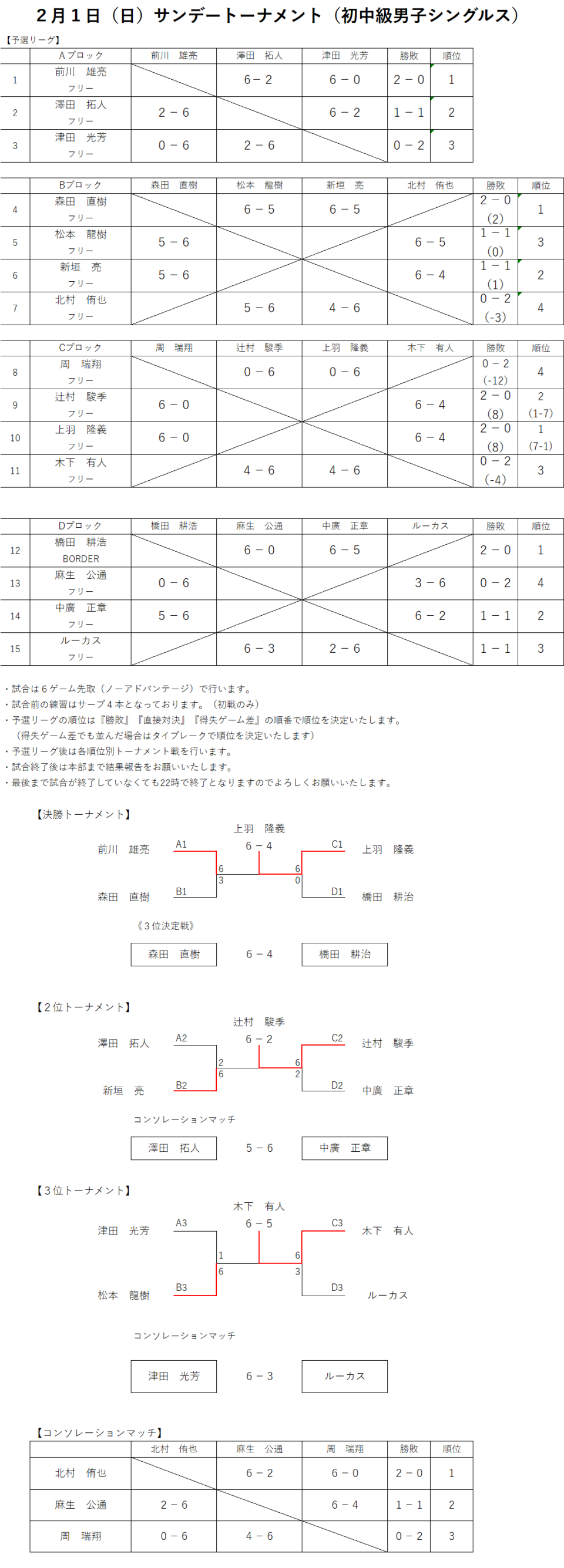 2026.2.1(日)サンデートーナメント(初中級男子シングルス)