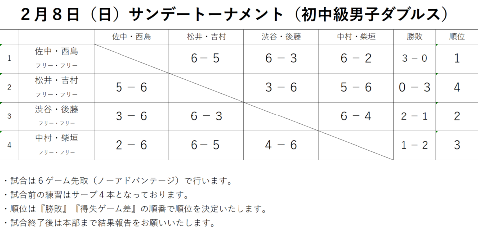 2026.2.8(日)サンデートーナメント(初中級男子ダブルス)