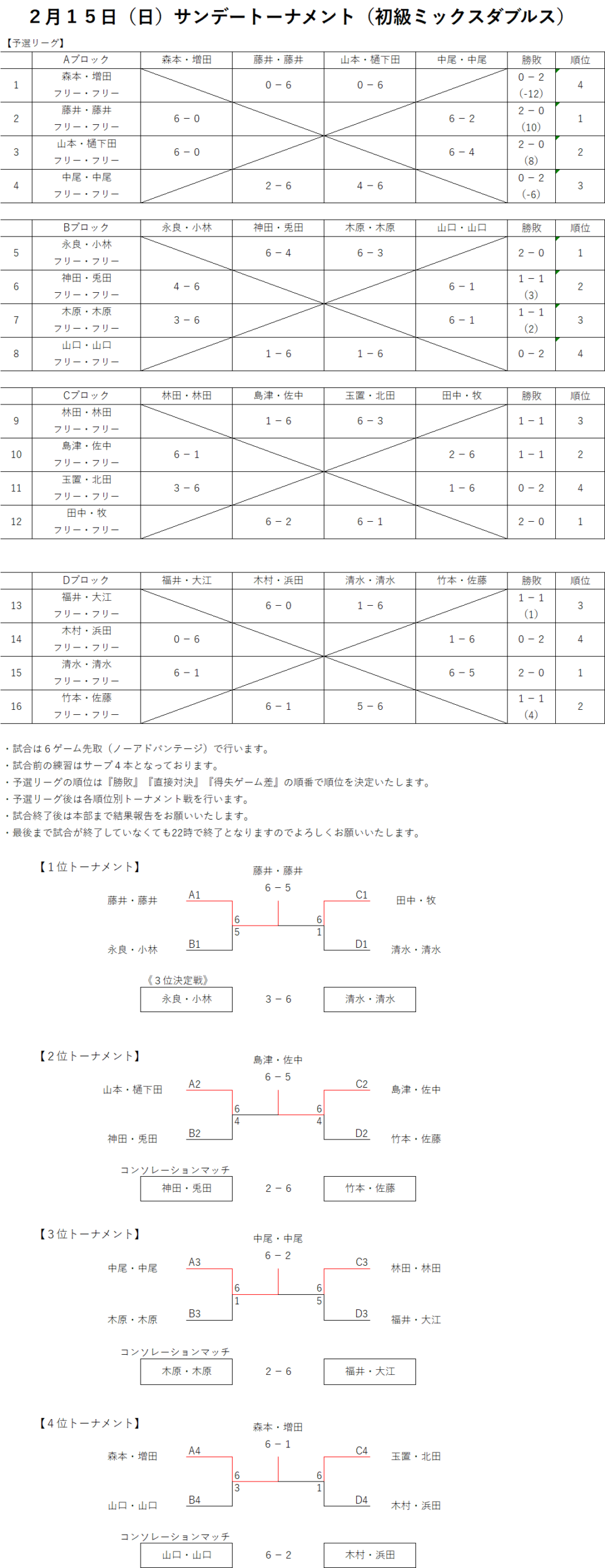 2026.2.15(日)サンデートーナメント(初級MIXダブルス)