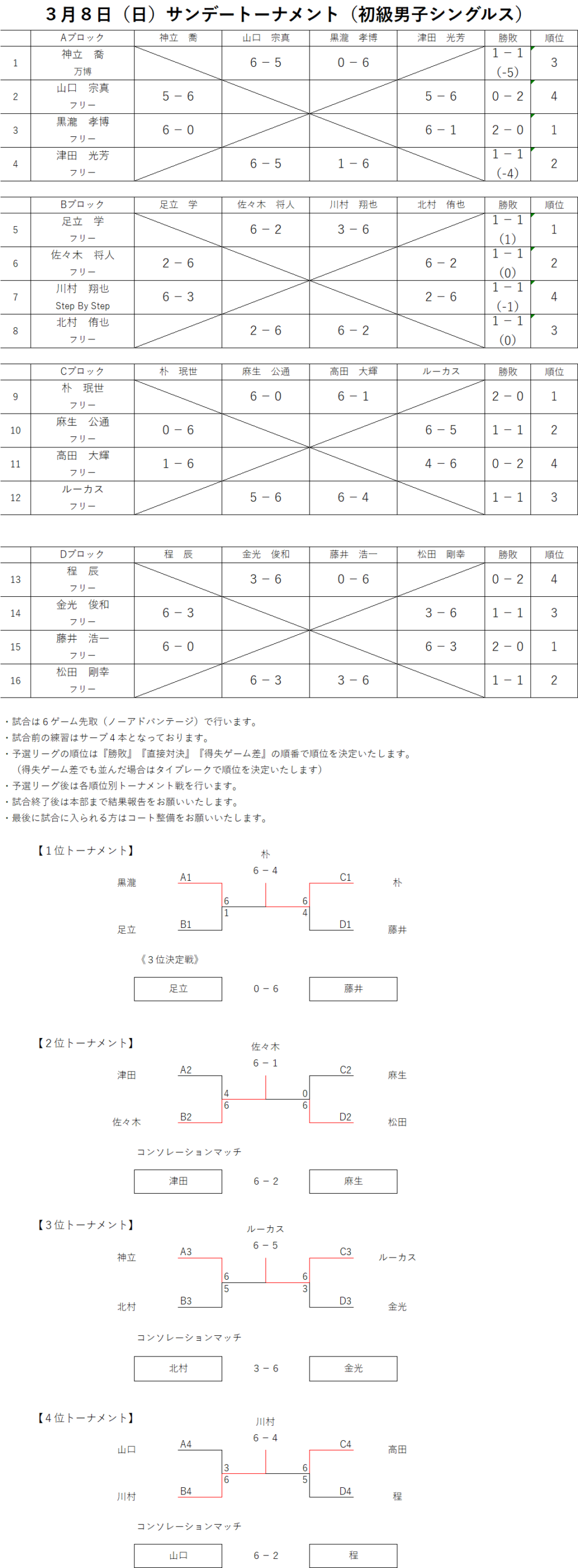 2026.3.8(日)サンデートーナメント(初級男子シングルス)