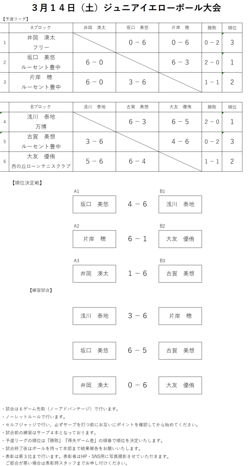 2026.3.14(土)ジュニアイエローボール男女混合シングルス大会