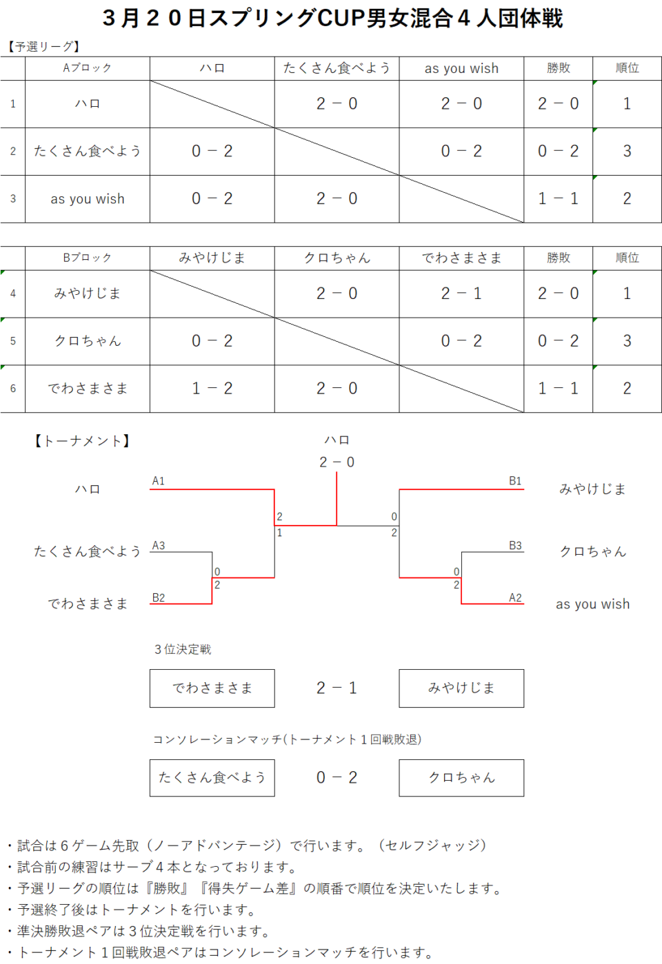 2026.3.20(金・祝)スプリングCUP男女混合4人団体戦