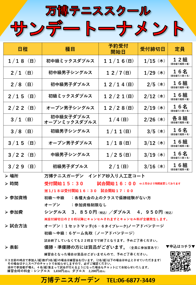 申込仕様変更によりサービスエースでのお申込みは出来かねます。 テニスベアでお申込みをお願いします。