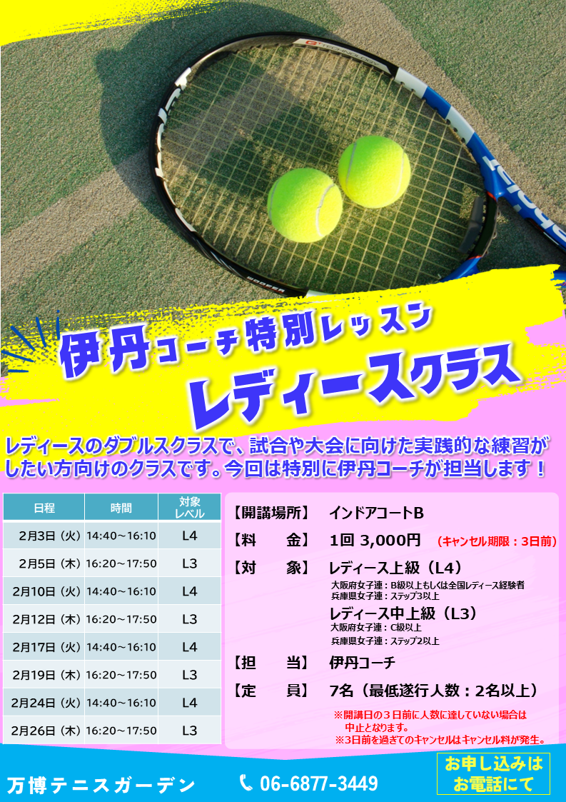 伊丹コーチ特別レッスン(レディース中上級・上級)開催!