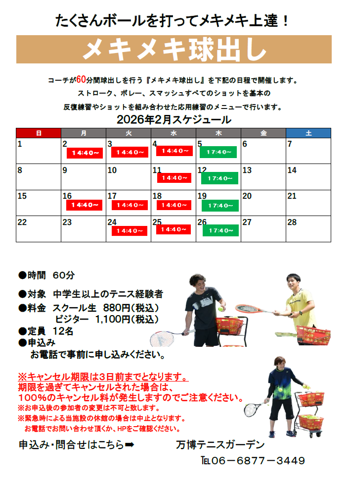 メキメキ球出し2月スケジュール