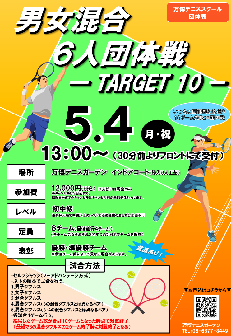 【新企画!】5月4日(月・祝)男女混合6人団体戦開催!