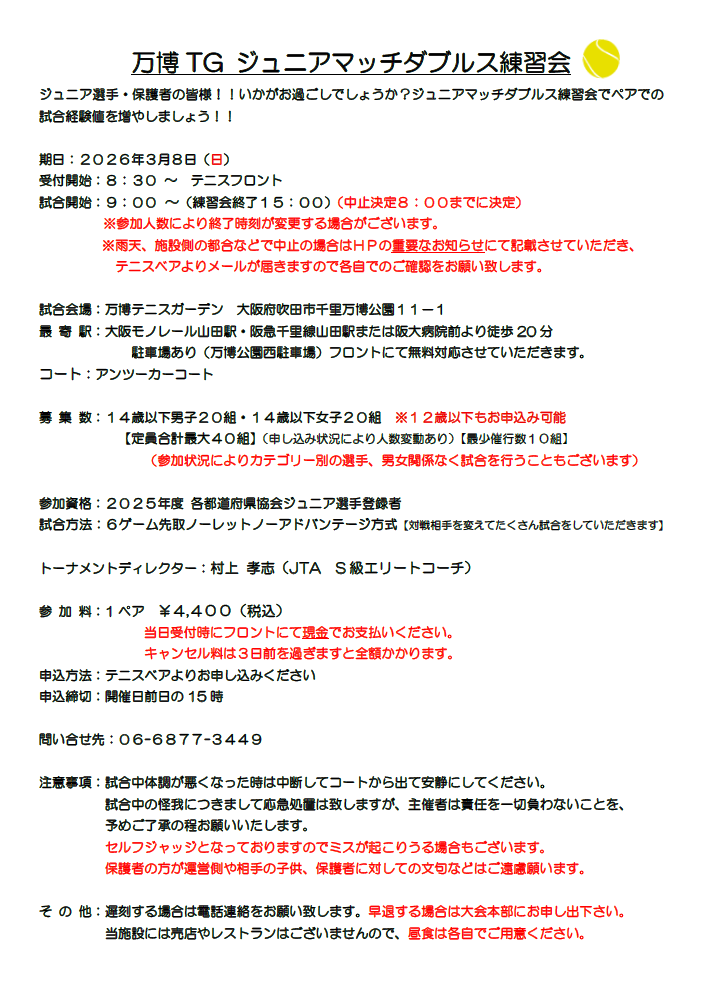 3月8日(日)ジュニアマッチダブルス練習会