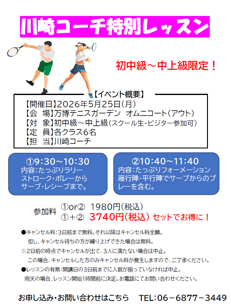 5月25日川崎コーチ特別レッスン開催!